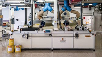 Výhody nanášení stříkáním jsou zřejmé: Zatímco poléváním nebo navalováním lze upravovat pouze rovné povrchy, stříkáním lze povrchově upravit všechny strany bez přerušení. Profilované části, jako jsou zásuvky, mohou být také upraveny. Jelikož excimerové paprsky vytvrzují lak na všech stranách a do hloubky v inertních podmínkách v excimerovém zařízení, dosáhneme tak všestranně dokonalé kvality povrchu i na hranách: s hluboce matným vzhledem a povrchem odolným proti vyleštění nebo otiskům prstů a sametovým na dotek – a to vše v udržitelném procesu lakování na bázi vody s nízkými emisemi!