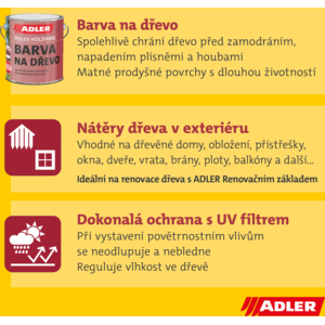 Univerzální, hedvábně matná rozpouštědlová barva na dřevo v exteriéru.