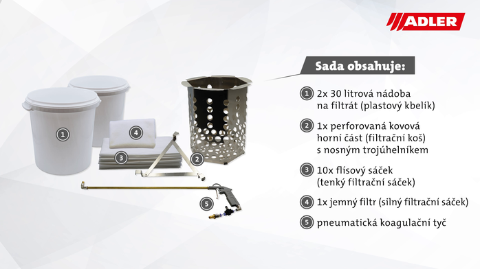 Koagulační set pro znečištěnou vodu z lakoven od ADLER slouží k sedimentování oplachové vody znečištěné vodou ředitelnými materiály, při čištění aplikačních zařízení. Přidáním flokulantu a mícháním koagulační tyčinkou se znečištěná voda usadí a lze ji filtrovat.