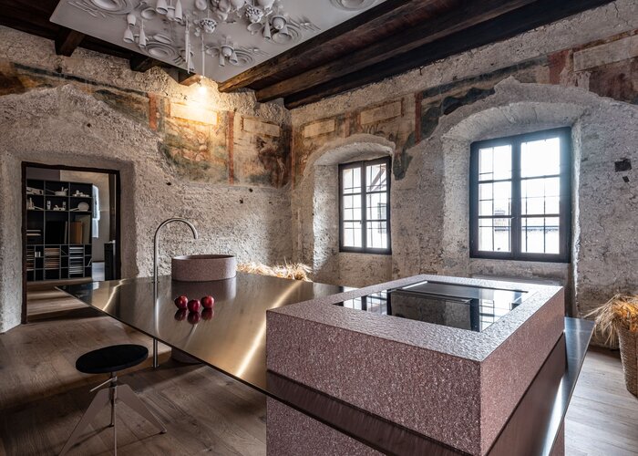 A tak na konci září, v působivém prostředí Castel Belasi ve Val di Non, rodina Cova otevřela své dveře zákazníkům, zaměstnancům a přátelům, aby představila renovační práce proběhlé v posledních dvou letech a konečně odhalila dlouho očekávanou kuchyni, která se ne náhodou nachází v historické místnosti s freskami umístěné na konci expozičního itineráře o historii firmy.