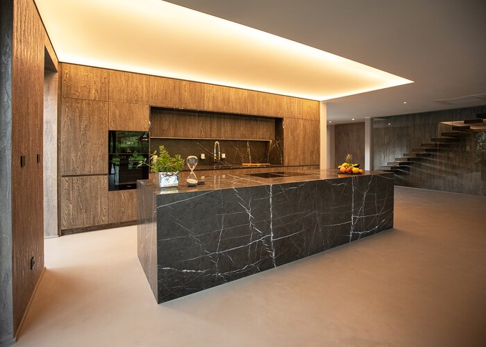 Nevšední rekonstrukce brněnské vily a splnění speciálních požadavků klientky, to spojuje tuto mimořádnou referenci ze srdce Evropy. Aby bylo docíleno vzhledu dřevěného povrchu dle vzácných vzorků klientky z Ameriky, bylo použito speciálních povrchových úprav a laků. Tím byl vytvořen unikátní vzhled starého dubu s patinou, který byl následně použit na všech prvcích v interiéru. Atmosféra celého interiéru je tím spojena do elegantního a harmonického celku. Odborná spolupráce realizátora a našich techniků hrály v tomto výjimečném projektu klíčovou roli.