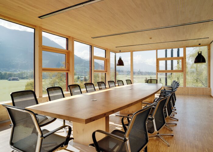 Tady se dělají rozhodnutí, tady vznikají nápady, zde je budoucnost firmy již přítomností: třetí patro správní budovy ve Schwazu pojímá místnosti jednatelů, velký zasedací sál s pohledem na okolí kolem dokola a kanceláře finančního a účetního oddělení. „Měla vzniknout správná atmosféra pro vize budoucnosti a přesnost, tedy perfektní pracovní místo“, říká Claudia Berghofer, která koordinovala a společně s architekty plánovala výstavbu s velkou láskou k detailům. „Proto bylo naším přáním hodně světlosti a hodně dřeva – nejpřirozenější ze všech surovin a každodenní chléb všech zaměstnanců firmy ADLER. Kromě toho jsme si nechali dát tipy a podněty také od poradkyně feng-shui.“