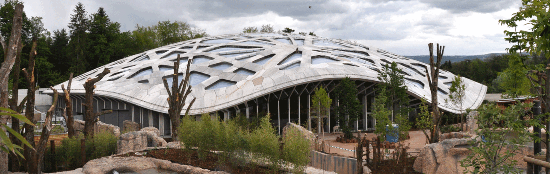 Výchozí situace byla vzrušující výzvou pro švýcarské studio Markus Schietsch Architekten, které vyhrálo mezinárodní veřejnou soutěž k tomuto projektu. Pro návrh formy sloního domova založeného na práci se dřevem se architekti nechali inspirovat obrazy z rostlinné a zvířecí říše. Mimořádným prvkem jejich přírodního obydlí, které bylo dokončeno v červnu 2014, je střecha o rozloze 6 800 metrů čtverečných, vyrobená z třívrstvých desek ze smrkového dřeva. Navzdory své velikosti zapadá plošně zakřivená dřevěná střecha výborně do okolní krajiny. Lesní porost a stavba tvoří vzájemnou symbiózu; v popředí je ničím nerušený přírodní zážitek – pro člověka i pro zvířata.