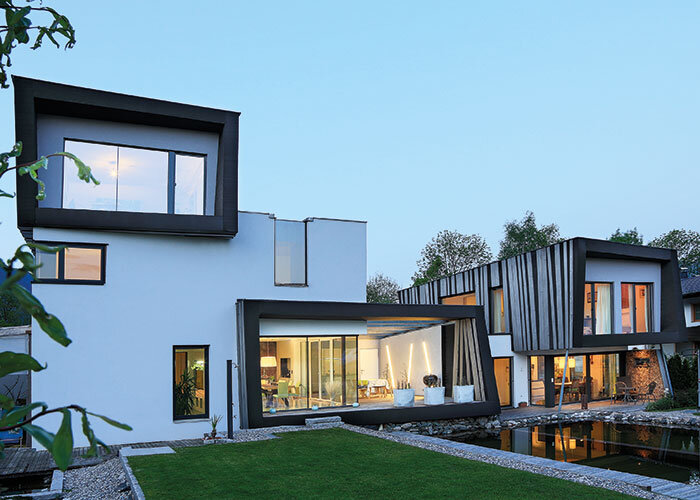 Svou oblíbenou barvu - modrou - nemůže často, tento tyrolský architekt, ve svých projektech uplatňovat, ale nechává jí alespoň vtékat - vytvořením vodních ploch. Jeho dům obklopuje harmonická kombinace rybníka a bazénu. Stříbrno-černo-bílá fasáda se zrcadlí ve vodě, orámovaná zelenými loukami, a v pozadí v modrém nebi se tyčí hory. Není divu, že se v tomto barevném snu cítí dobře mladí i staří!
